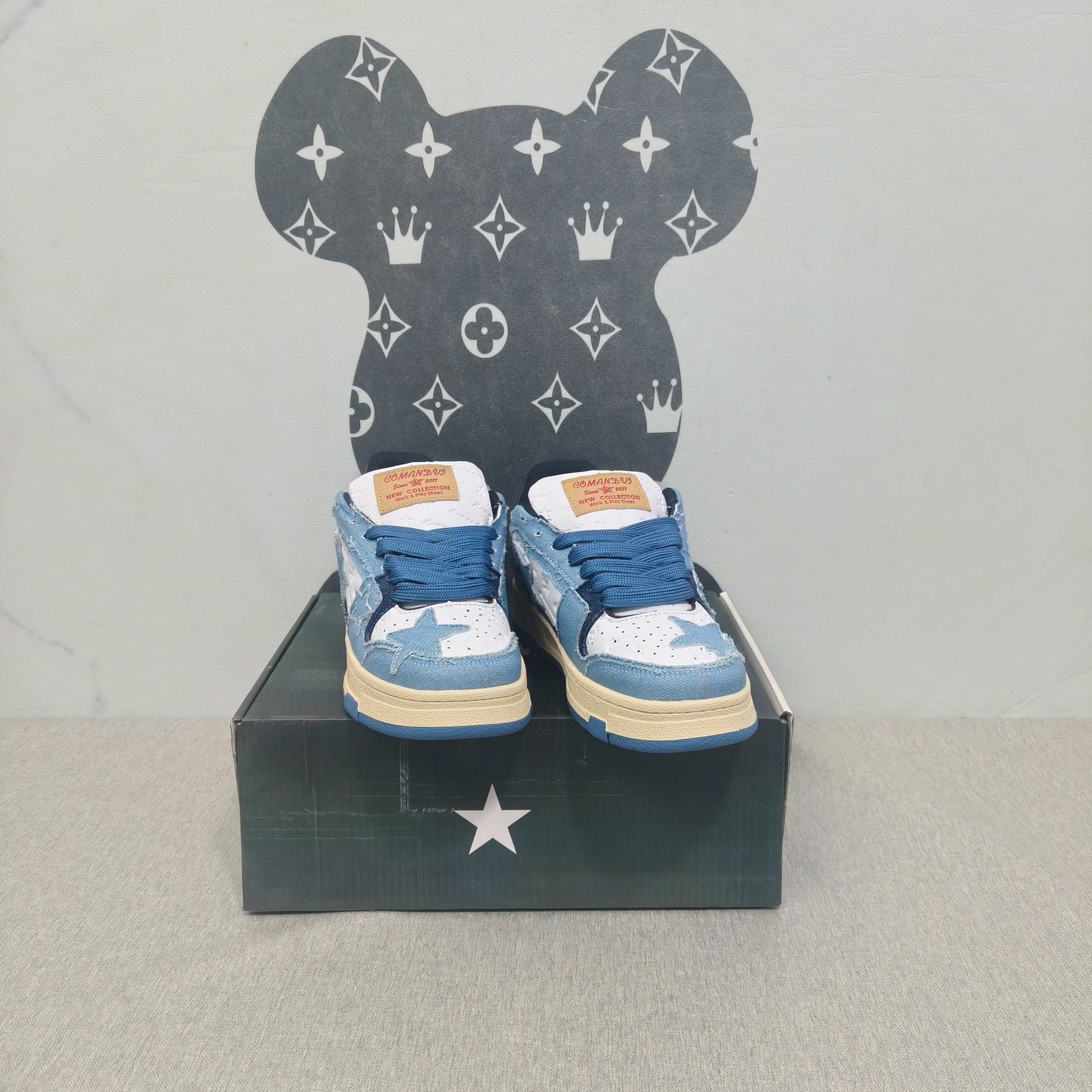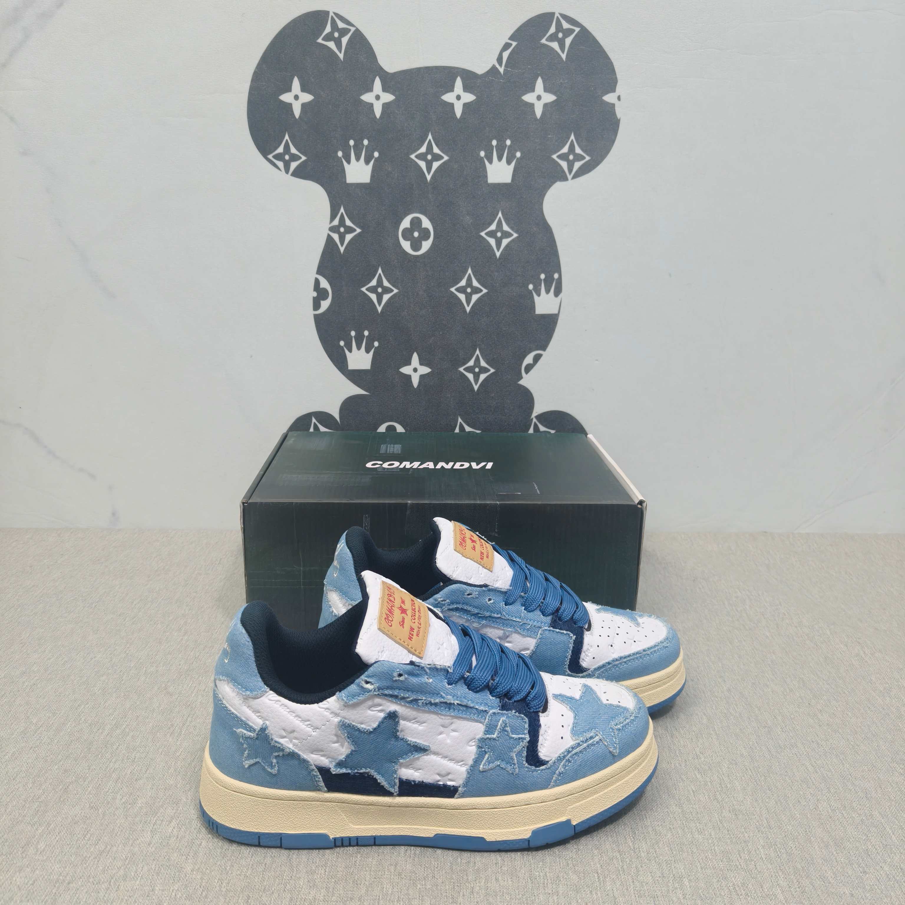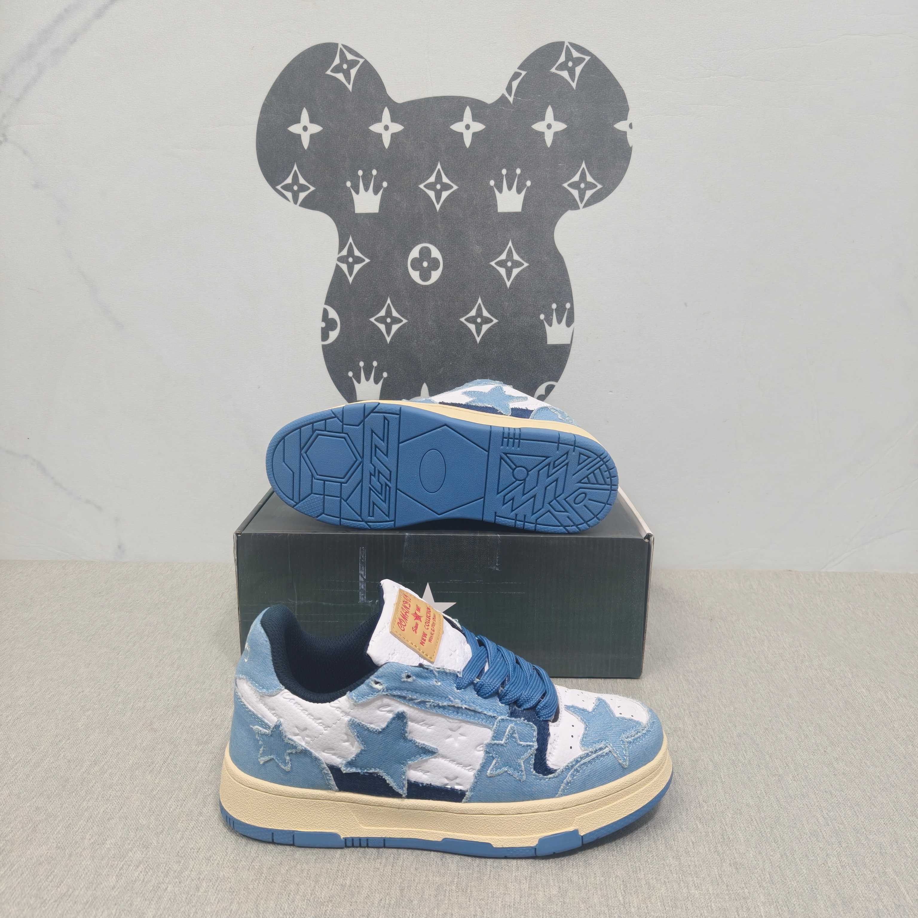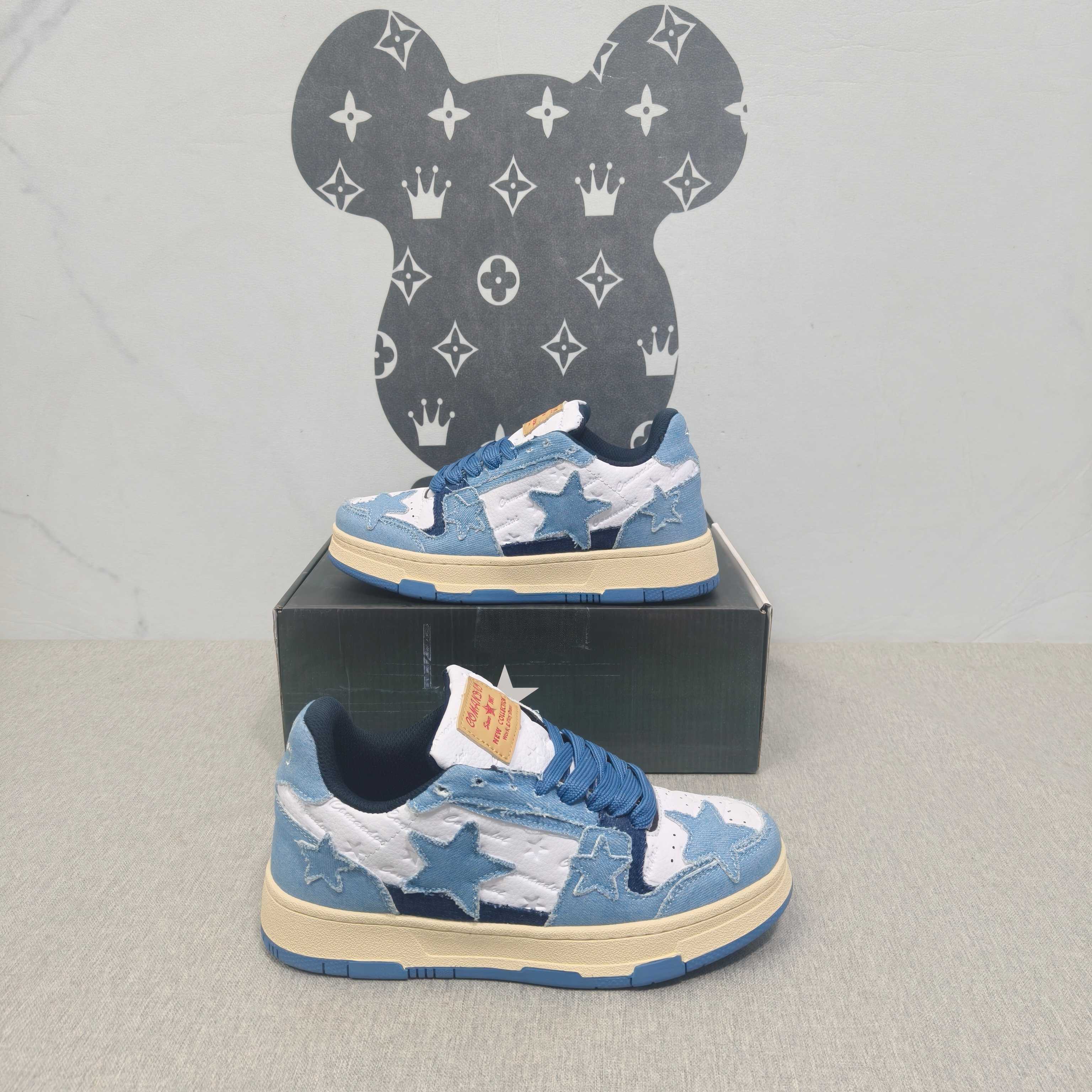 国潮星星 蓝牛仔 36-44码 男女款现货.正确版型 拉帮套楦,真上线,激光下料,做工细节到位!超迁面料橡胶大底稳行鞋垫,原版开模,现货实拍!
